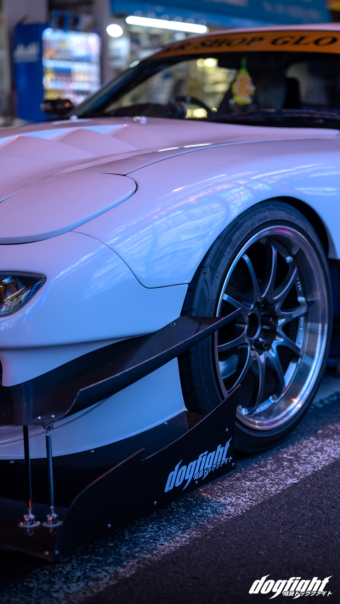 The first thing to catch my eye was the large Zero Two decal on the back windshield; I knew this only because I’ve always been a fan of the typography from Darling and The Franxx, despite never having seen the anime. Coincidentally to all of this, Nerima City is considered the birthplace of anime in Japan, and Shion is clearly a fan of anime himself. Not to the point of a full itasha livery, but he’ll be the first to admit his fondness for anime and all things Akihabara. Anyway, Shion had dropped the car off to get a Glow front splitter and rear diffuser installed over the week; he had recently acquired the car and was in the process of making it his own, and matching the existing RE-Amemiya GT-AD kit with the CSG demo car specifications is a naturally good looking combination. Shion is from a younger generation, is a trained hairstylist by trade, and keeps up with Japan’s latest trends in style and fashion, so it’s no wonder that he would start modifying the FD so soon. Influenced heavily by time attack and turning to Hara and Glow for advice, the modifications began with new aero, and currently the car is back at CSG for an entirely new engine setup featuring a V-mount, side-ported 13b, and single turbo conversion. A new hood is also on order to replace the Scoot Sports FRP unit currently installed.